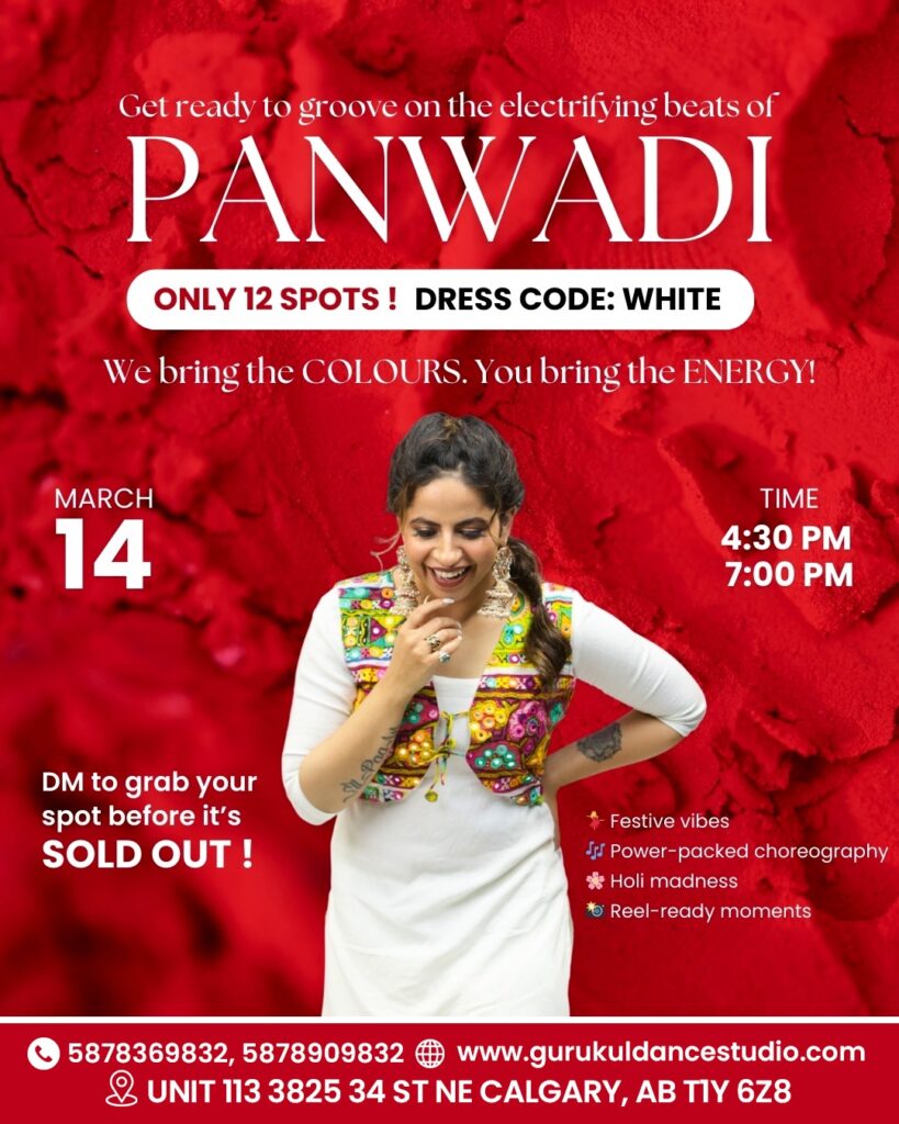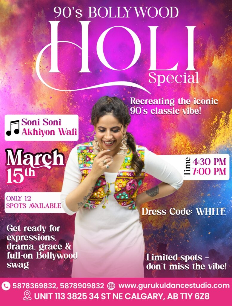 Holi Special Dance Workshops with – Gurukul Dance Studio March 14 , 2026 Calgary 🔥 PANWADI – Holi Freestyle Special…